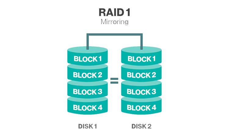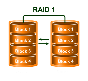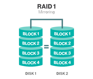 RAID 1 is a popular RAID configuration that mirrors data and provides redundancy in the event of a single hard drive failure. Your Data files are stored and replicated on both hard drives or volumes simultaneously. Two 1 TB hard drives configured as a RAID 1 will store 1 TB of your data and you will have a copy of your data should one or the other of your hard drives fail.
